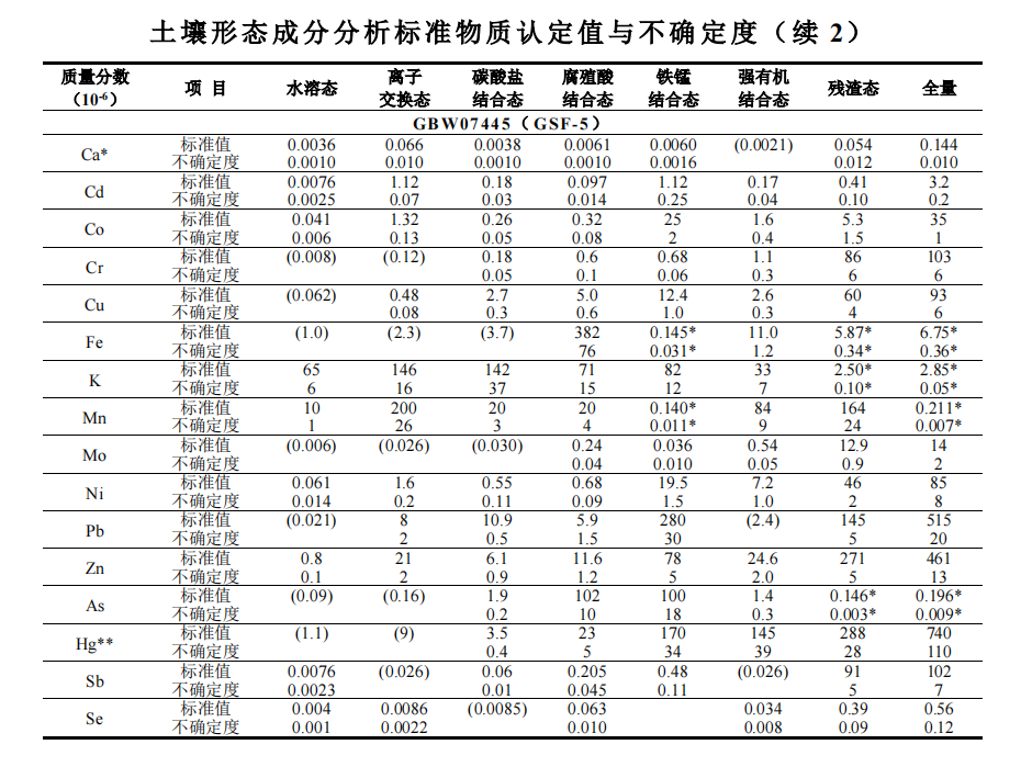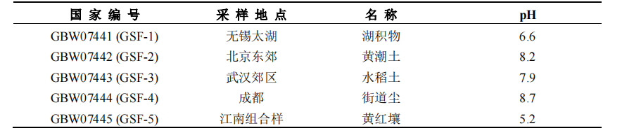 标准物质分析采用的浸提方法和提取条件附后。测定方法:Cd、Cu、Pb、Zn、Mo、Co、Cr、Ni以 ICP-MS 为主,Mn、Fe、Ca、K 以 ICP-AES 为主,As、Hg、Sb、Se 以 AFS 为主。
